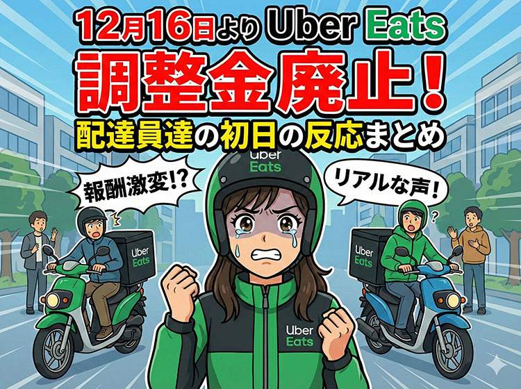 12月16日よりUber Eatsで調整金が廃止!配達員達の初日の反応まとめ